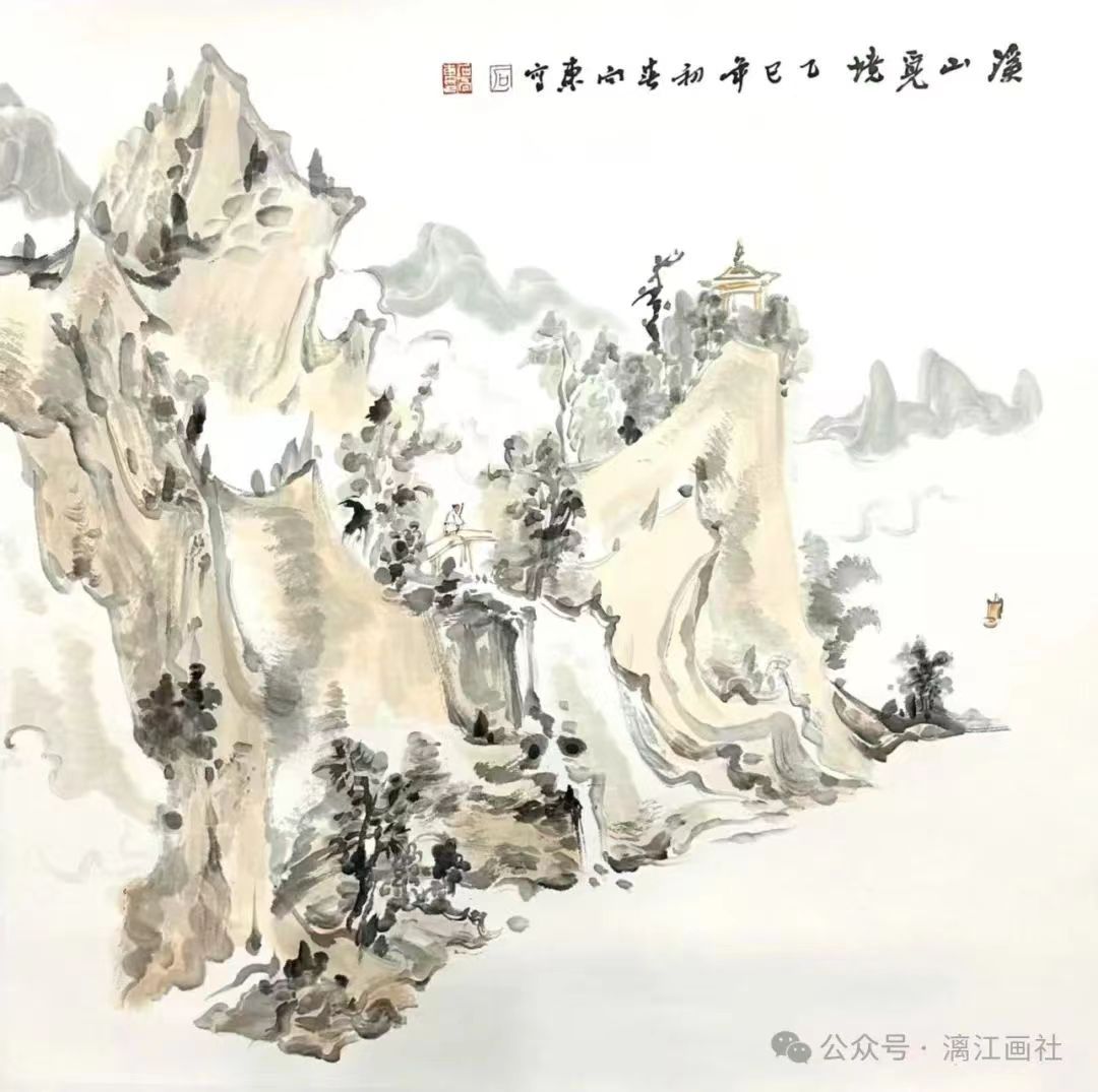 自幼生活在漓江山水间的石向东,他國画的题材多取自漓江山水景观,作品立意清新,笔墨深厚,烟云流泉飘然欲出,所作的小品尤为精到,尺幅之间腾挪跌岩,疏密得体,简约入神。他创作的巜夏山叠翠有人家》,画面中夏山层层叠叠,墨色淡淡相宜,展现出夏日山林茂盛与生机,山间错落着的房屋,体现出人与自然和谐共生的美好的意境,引人入胜。