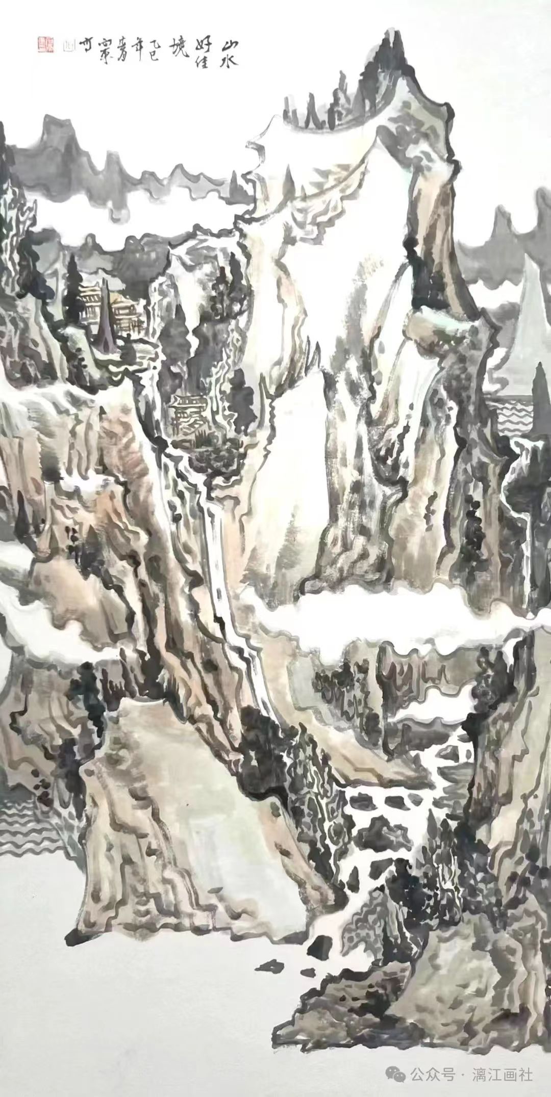 石向东的国画以水墨画为主,画作通过墨色浓淡干湿变化表现山水神韵,营造空灵,悠远雅静的氛围。每幅作品仿佛是远离尘世喧嚣的世外桃源,让人感受到大自然的静谧优雅。他的画作《春山晨韵》描绘了春天山间清晨的景色,通过细腻的笔触和淡雅的墨色,表现出春天山林的清新与灵动,仿佛能让人感受到晨雾中湿润的空气和鸟儿的啼鸣。引发人们对山水之的赞叹,对山乡宁静闲适生活的向往,有极强的艺术感染力与精神透力。
