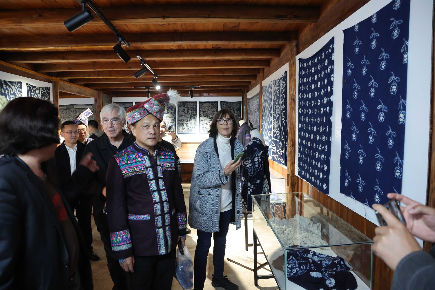 在融水群山环抱之中,梦呜苗寨以最朴素、也最深刻的方式,向世界敞开了自己的文化之门。12月20日,法国美术家协会代表团走进梦呜苗寨马践非遗馆,实地探访苗族非物质文化遗产,在染布、面具与图腾之间,展开了一场跨越文明的艺术对话。