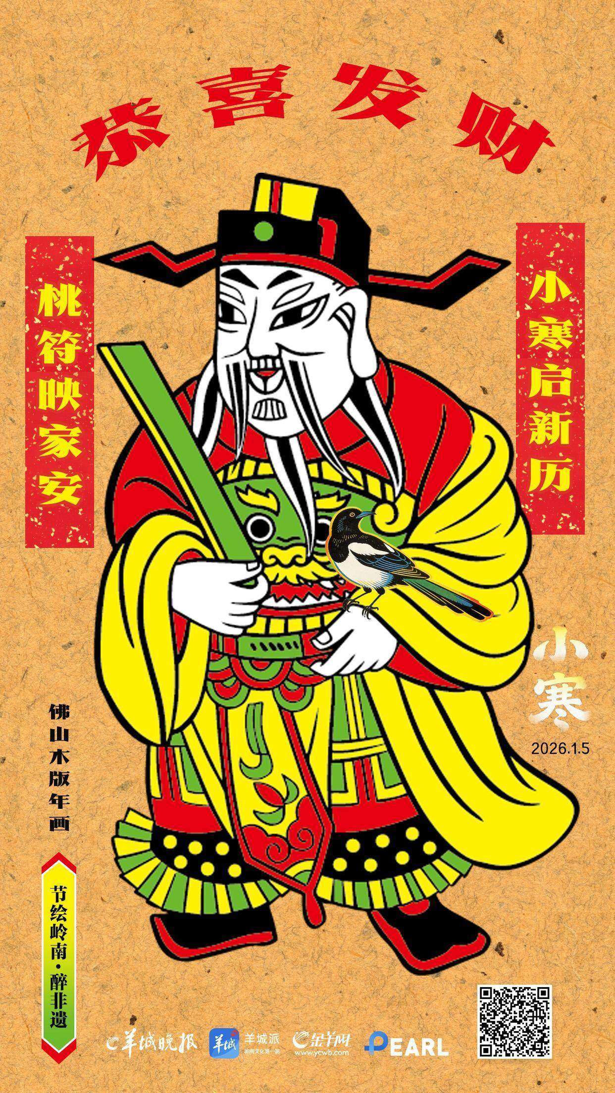 朱砂炽烈,金银璀璨。门神持戟而立,威仪中透着慈祥;天官展卷赐福,庄重里藏着温和。跃然纸上的斑斓世界,不仅是节庆的装饰,更是岭南人家对好日子最直白、最炽热的期盼。
