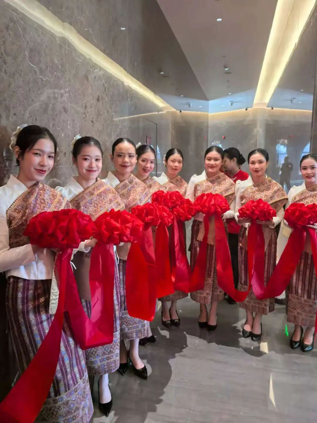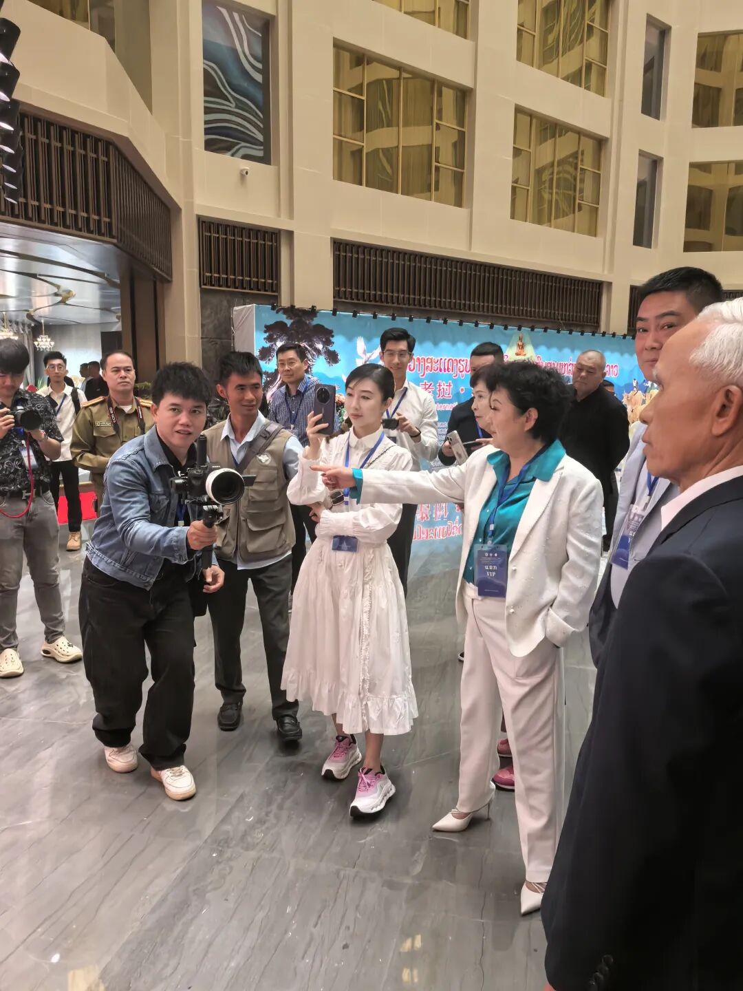 开幕式现场嘉宾云集,星光熠熠。老挝人民革命党政治局常委、中央书记处书记、中宣部部长、中央理论委员会主席坎潘·培亚翁,博胶省党委书记边康·布占鹏准将,老挝前副总理宋萨瓦·凌沙瓦,党中央委员、文化与旅游部副部长万喜·格陌,党中央办公厅副主任季乔·占塔布里博士,公安部副部长安·乌阿农努准将等老挝政军各界重要代表悉数到场。中方代表天下和平美术馆馆长陈潜峰、亚太和平文化艺术研究院院长范茂胜、执行馆长马国旗等,携手世界和平文化艺术联盟代表及近百位中外艺术家,共同见证了这一跨越国界的艺术盛事。