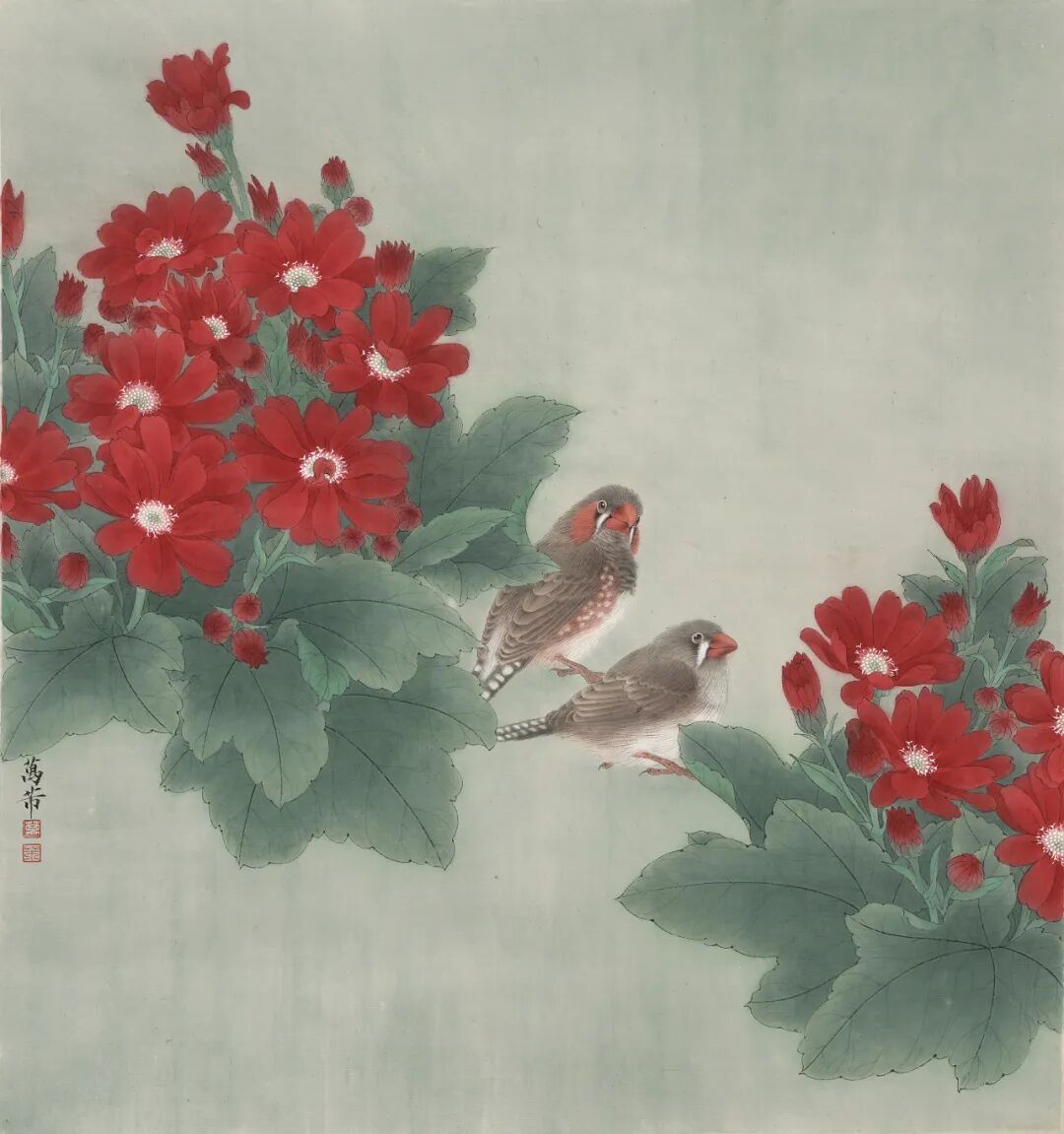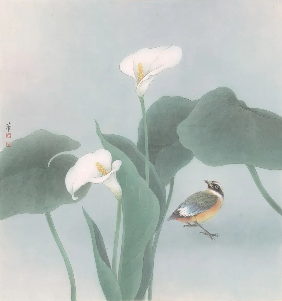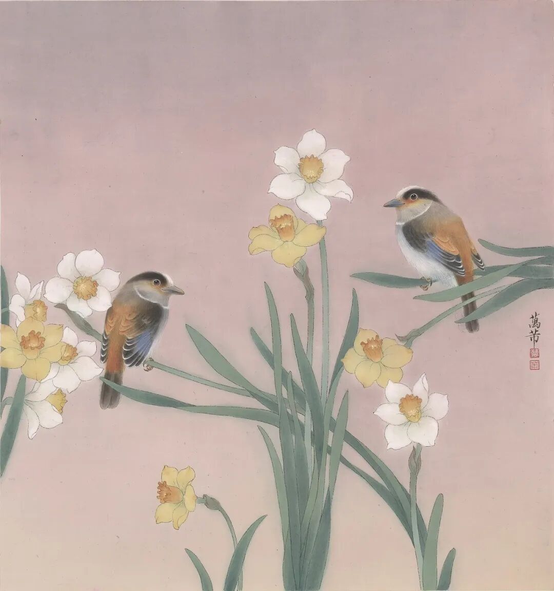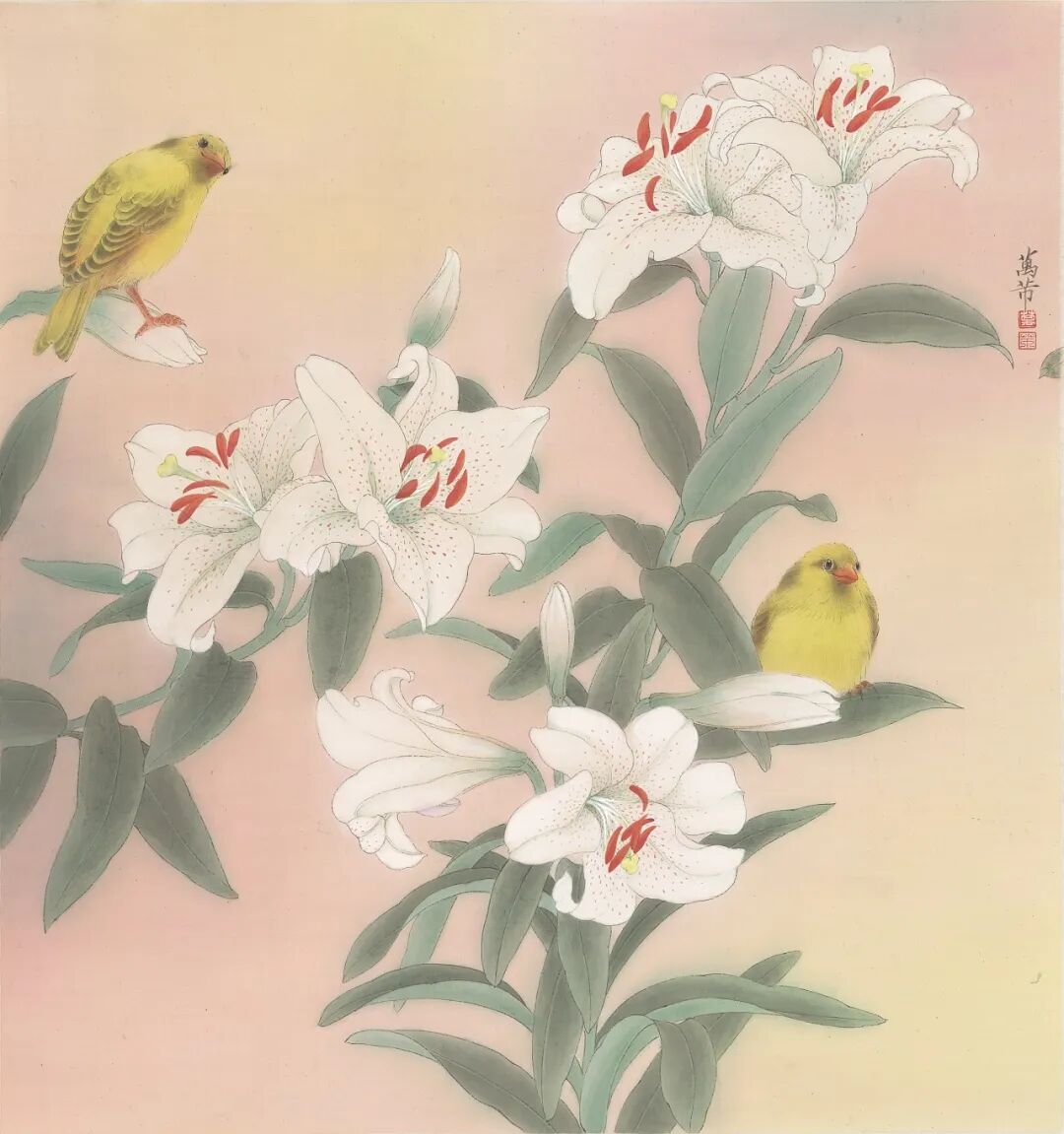 万芾是上海实力派花鸟画家,她笔下“花鸟世界”中的二十四节气,作品色彩丰富,构图现代而不失传统韵味。