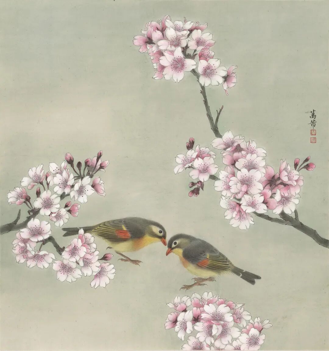万芾是上海实力派花鸟画家,她笔下“花鸟世界”中的二十四节气,作品色彩丰富,构图现代而不失传统韵味。