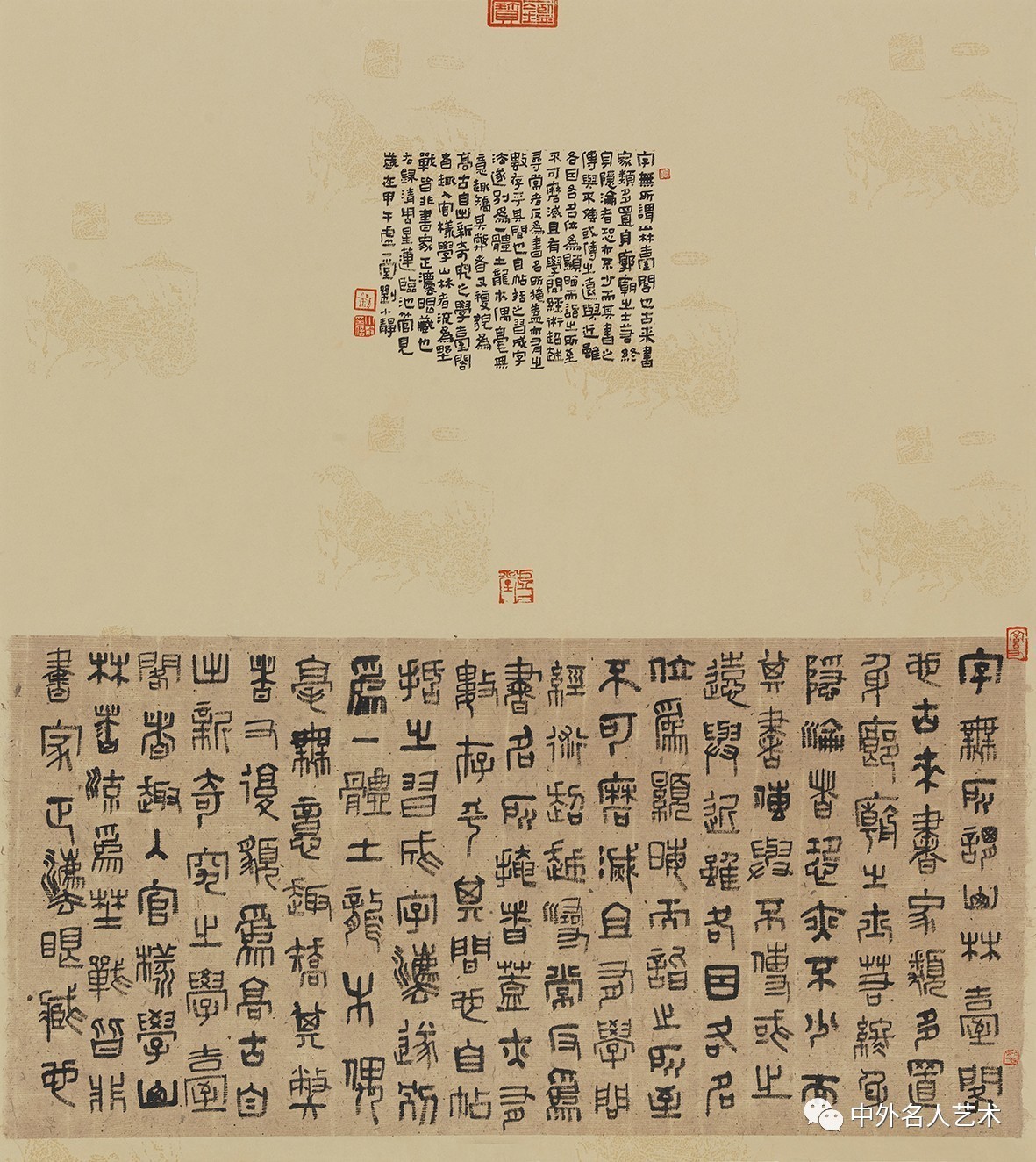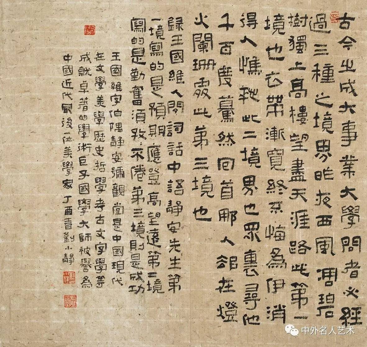 在书体研习与技法探索上,刘小静以篆隶为根基,兼涉颜楷,形成了“以篆隶立骨,以清雅传神”的艺术面貌。她主攻篆书与隶书,于秦篆《石鼓文》中汲取圆劲凝练、古朴端庄的线条质感,于汉碑《张迁碑》之朴拙、《曹全碑》之秀雅于一体,笔画刚健有力、宽博厚重、大气堂堂的结体气象,笔法恪守中锋,线条沉实有力,无轻飘浮滑之态,无刻意雕琢之痕。其隶书作品,朴拙中见灵动,端庄中含意趣,既保留汉隶庙堂之气的正大雍容,又融入女性书家特有的细腻与灵秀,刚柔相济、动静相宜;篆书作品则线条圆融、气息静穆,古雅而不呆板,厚重而不僵硬,尽显笔墨间的文心与修为。