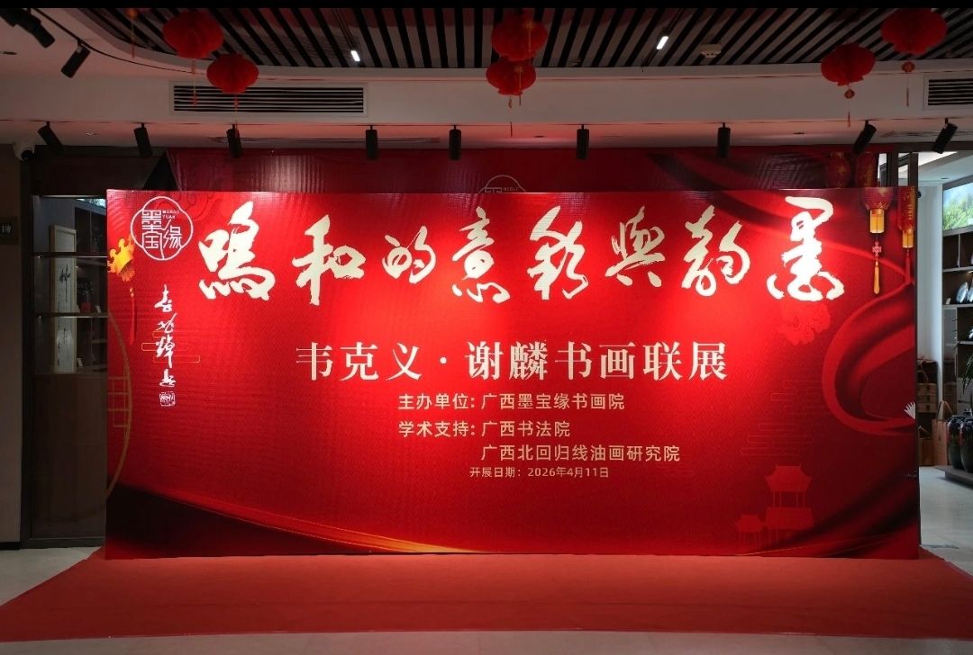 三月三壮乡歌节前夕,八桂大地浸润在浓郁的民族文化氛围之中,广西墨宝缘书画院精心筹办的韦克义、谢麟书画联展如期启幕。这场汇聚广西书画界两位领军人物精品力作的展览,以名家联袂、低调务实、民间主办、作者亲解等七大鲜明特色,褪去浮华、回归艺术本真,为八桂文艺界奉上一场直击心灵的艺术盛宴。不太大的展馆里,书与画相映成趣,笔与墨交融共生,韦克义、谢麟二位先生以半生深耕的艺术造诣,书写八桂文脉、绘就家乡山水,尽显艺苑双秀比翼、八桂墨彩腾飞的动人气象。