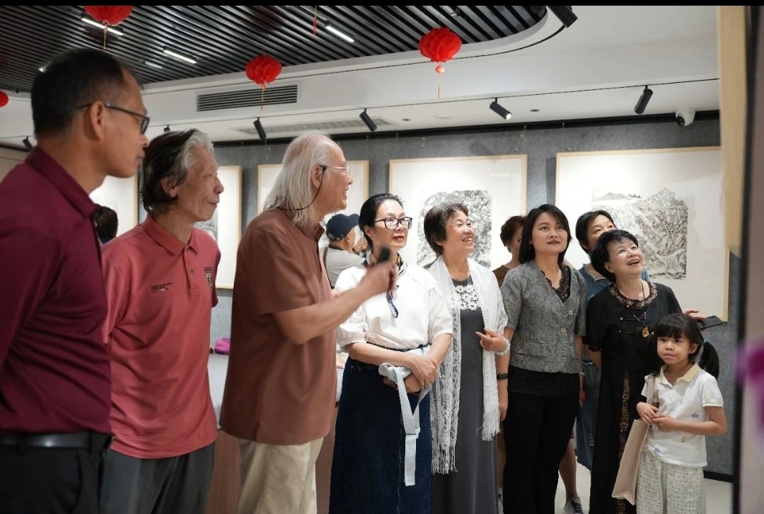 这场书画联展,最让人动容的,是其摒弃浮华、不忘初心的务实之风。展览由广西墨宝缘书画院民间主办,全程不占用任何公共资源,不搞豪华隆重的开展仪式,省去一切繁文缛节,只为搭建纯粹的艺术交流平台;展馆布置得很具人物化,观众可随地憩息喝茶,吃水果点心,座谈感想;现场不分身份阶层,各界领导、艺术学者、书画名家与普通民间爱好者齐聚一堂,共赏佳作、共话艺术,让高雅艺术真正走近大众;更难得的是,二位艺术家亲临现场,逐幅为观众解说创作初心、笔墨巧思、作品内涵,让观众近距离聆听大家心声,读懂艺术背后的文化情怀;而展览首次采用AI生成前言,让传统书画艺术与现代科技巧妙碰撞,为这场古韵满满的艺术盛宴,增添了一抹时代新意。