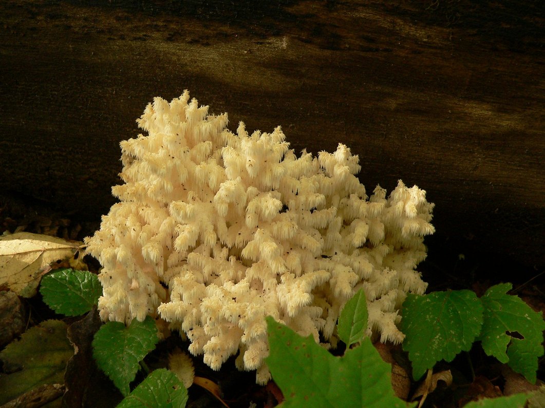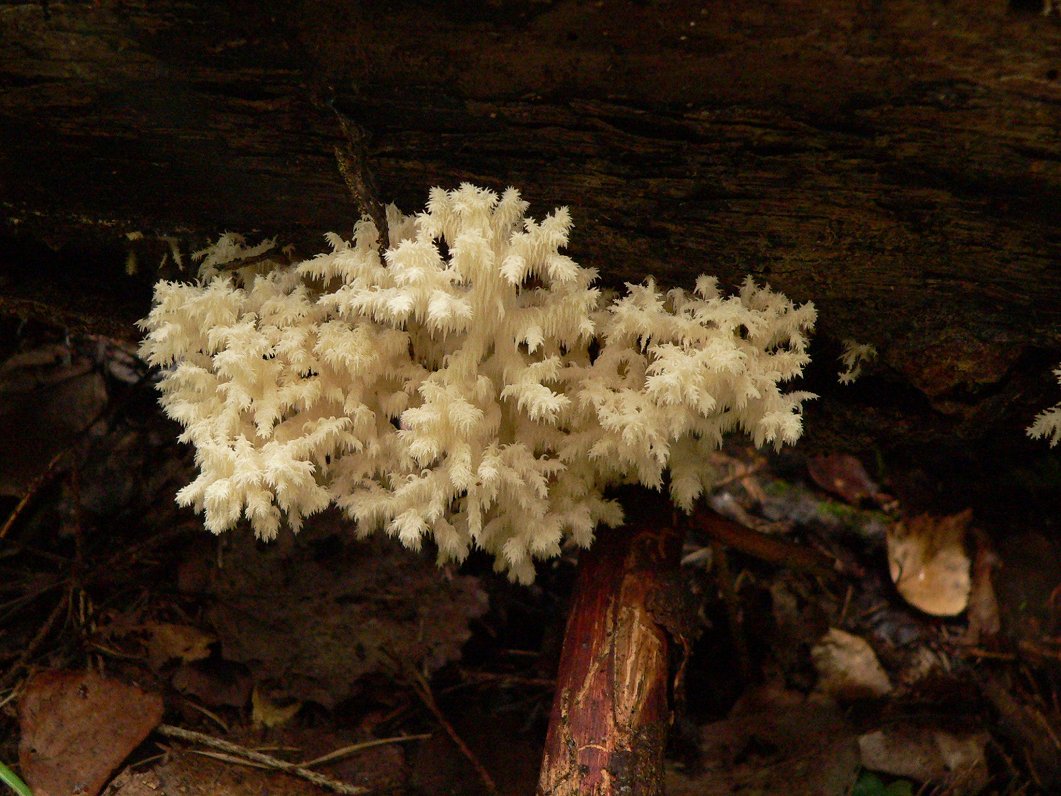 分枝或珊瑚较大的是白色、淡黄色或粉红色的大型木质分枝针菇。蘑菇的针头下垂,或多或少笔直,最长可达1.5厘米。这种蘑菇在夏季后半段和秋季在落叶树和枯死的树干上生长,蘑菇门户网站senes.lv上有提到。