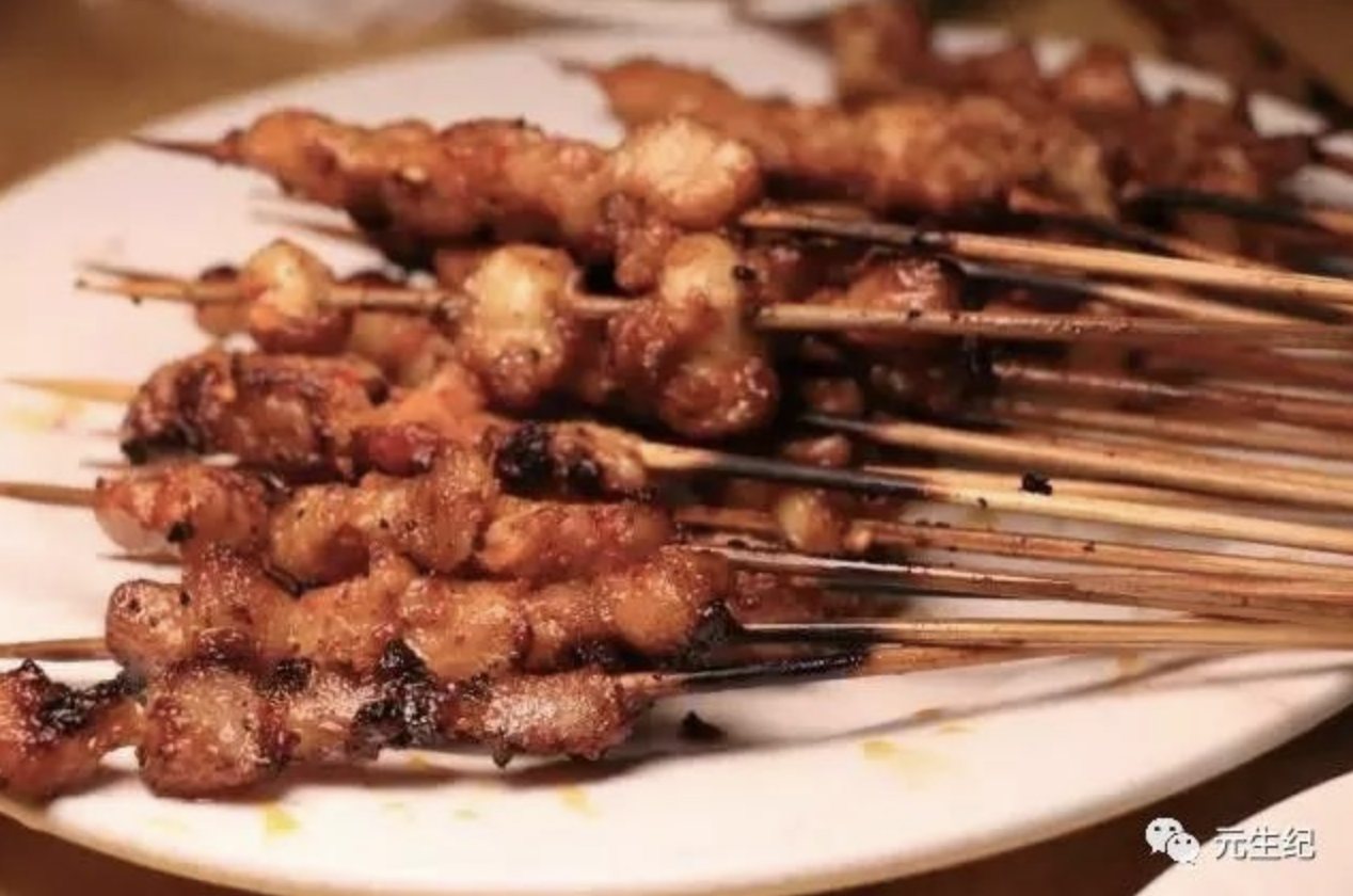 排骨不靠孜然提味道,单纯排骨的油脂香气,被碳火烤过,满是喷香。他们家的排骨比普通的排骨多些肥肉,吃起来有微微的回甜。
