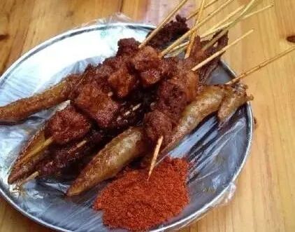 烤至半焦的烧烤,香臭香臭的双椒臭豆腐。让人欲罢不能。