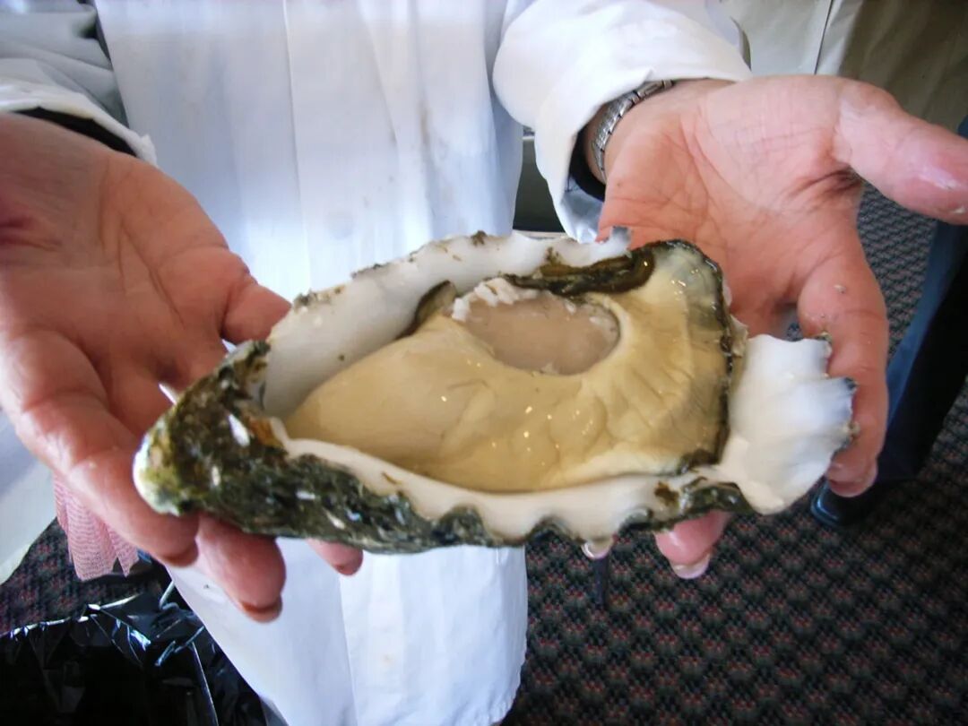 太平洋生蚝又称巨牡蛎,原产于北美洲西海岸,最大能长到30厘米长,重达2.8斤,这货色一看就非常有商业价值。