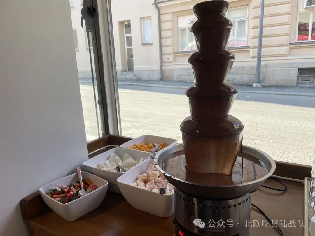 甜点有巧克力瀑布.