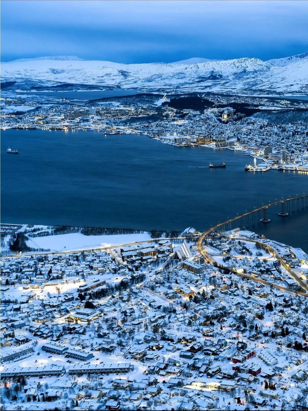 👉特罗姆瑟,有“北极之门”美誉,斯托尔斯坦恩山缆车俯瞰全城的景色超美。