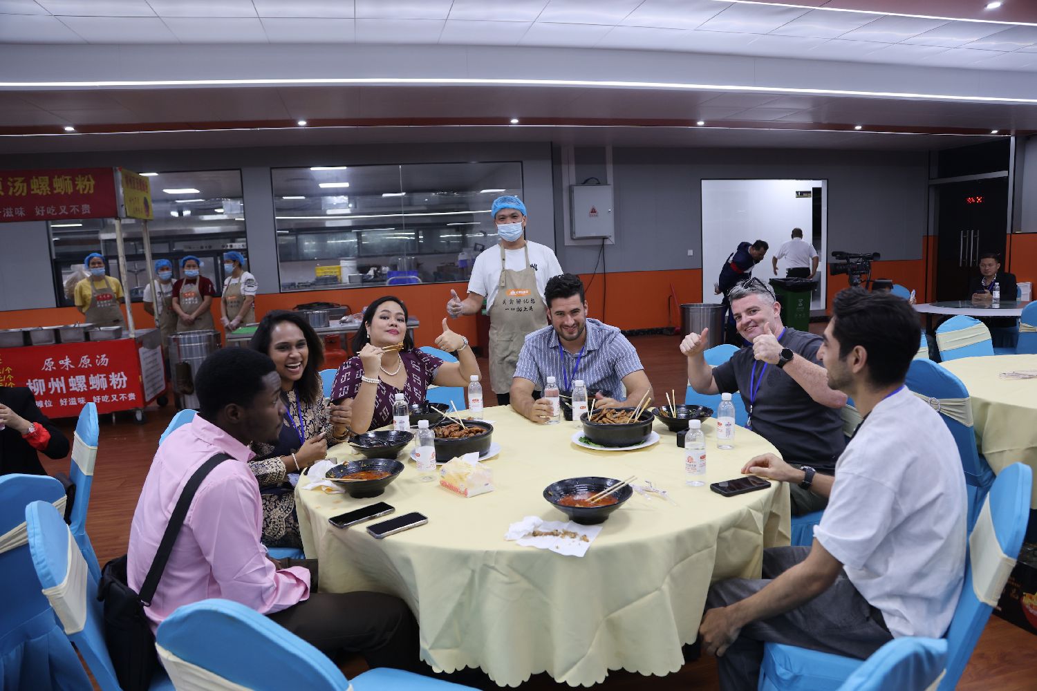 最动人的时刻,当属在园区餐厅的那一碗地道螺蛳粉。鸭脚软糯、猪脚入味、酸豆角脆嫩,与螺蛳粉的鲜香交织,在舌尖谱出一曲柳州风味的交响乐。“嗦螺螺,乐呵呵”的民谣再次响起,媒体人尝过这口鲜,才懂为何它能让“厌食症全无”——这是味蕾的狂欢,更是文化的共鸣。