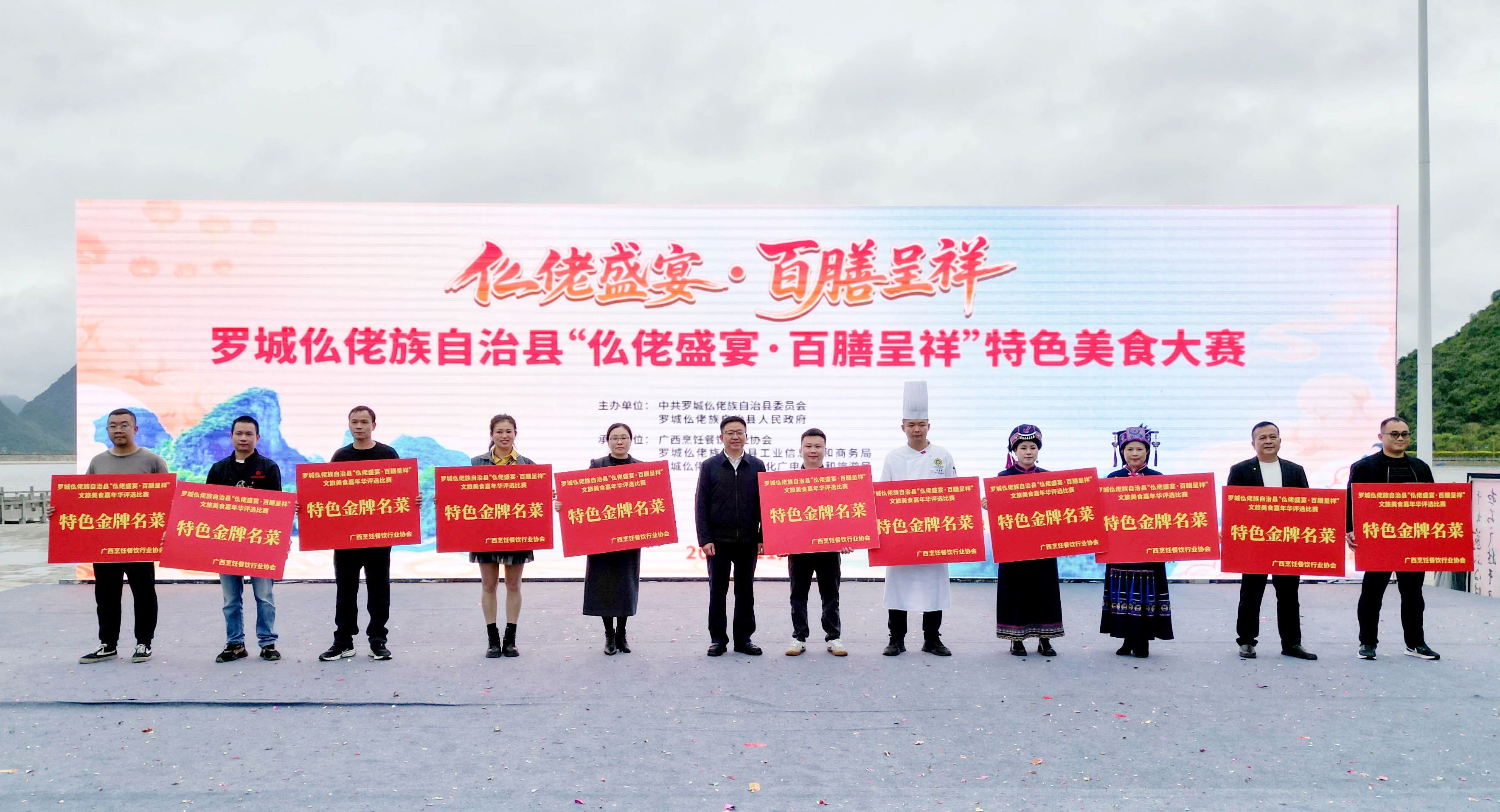 11月8日,给参加“仫佬盛宴・百膳呈祥”美食嘉年华参赛美食创作者颁奖。覃义琛摄
