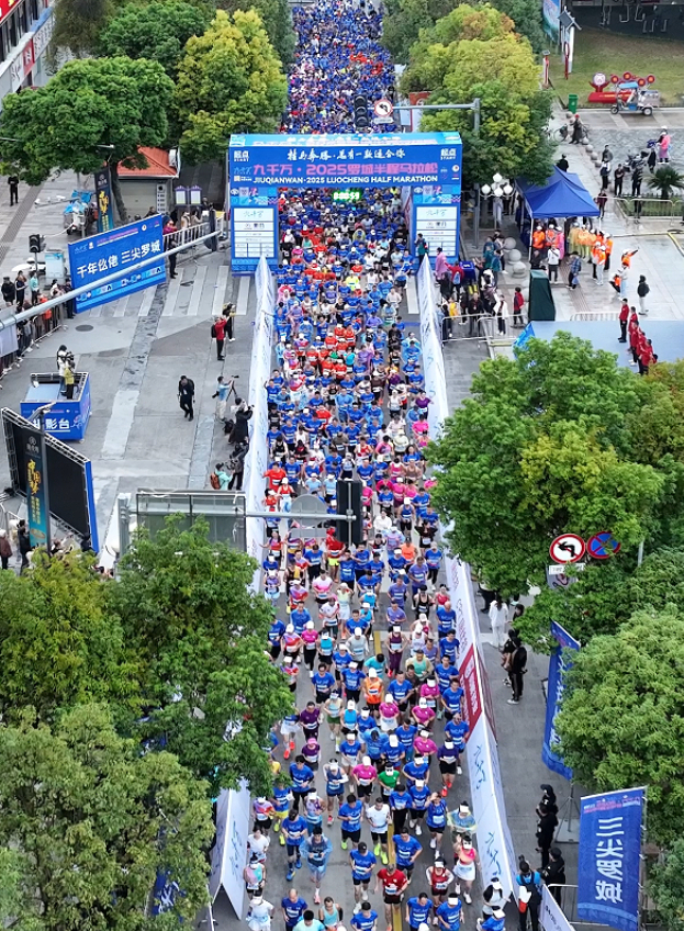 11月9日,九千万・2025罗城半程马拉松在民族文化广场鸣枪。刘宇黎摄