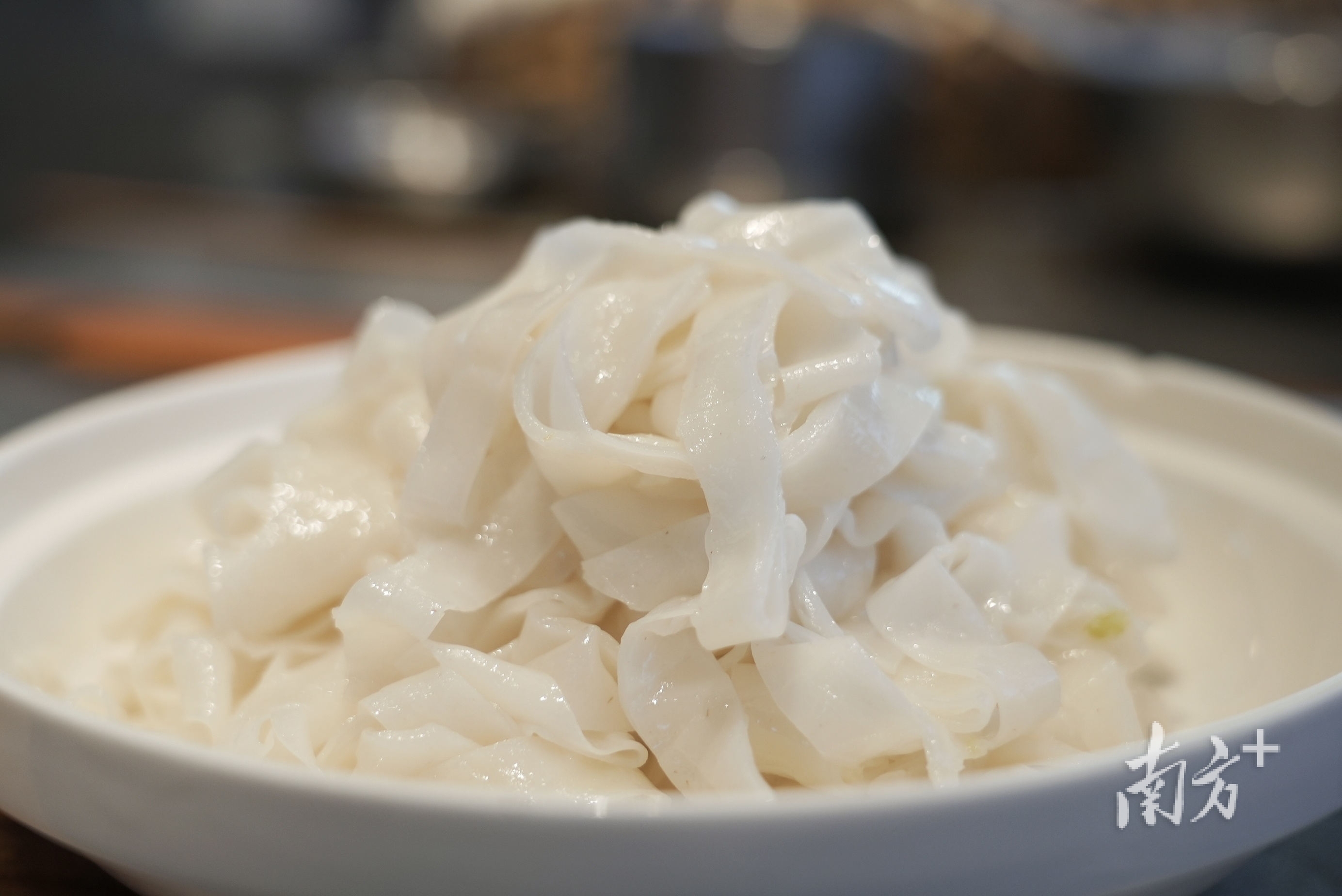 走进位于广州云台花园旁的沙河粉村,透过明厨亮灶,食客可以一窥沙河粉的制作全过程。