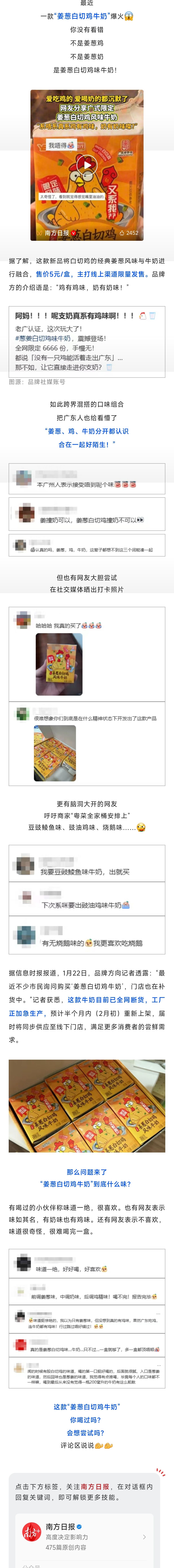 “姜葱白切鸡牛奶”卖断货,广东人懵了:分开都认识,合在一起好陌生