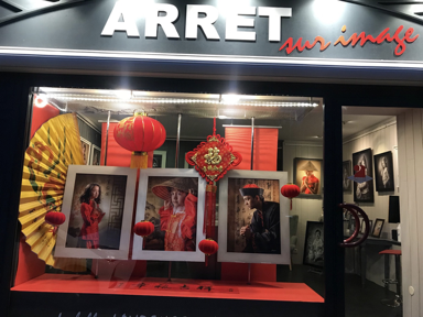 著名的肖像馆Arrêt sur Image的摄影师Isabelle伊丽莎白女士如同第一届文化节,率先用她的人物摄影作品和书法装饰了橱窗,引来不少观众围观