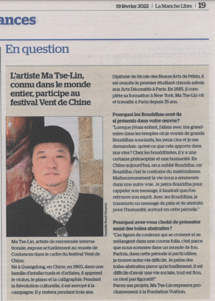 2022年2月19日的法国西部大报纸“La Manche Libre”刊登特写“世界著名的艺术家马泽霖参加中法文化节“中国风”