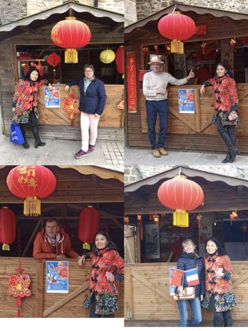 库塘斯Coutances城市中心的圣尼古拉广场分别安置了4个小木屋,这就是文化节的中国小市场,醒目的中国对联和灯笼显得隆隆的节日气氛!