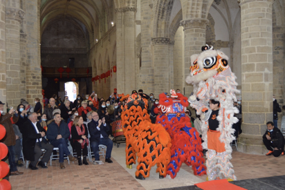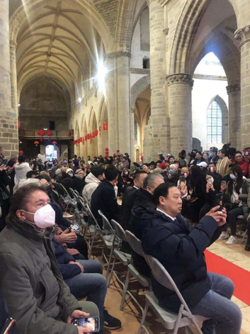 3月5日中午12点过后,来自巴黎的法国国际天行武道涂远见老师带队的天行武道舞狮队在古典的哥特式小教堂里为来宾进行了精彩的传统舞狮及锣鼓表演,庆祝节日典礼隆重开幕。