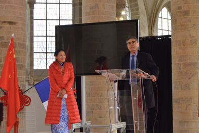 库塘斯市市长让-多米尼克·布尔丹先生(Jean-Dominique BOURDIN)和库塘斯市主管文化的副市长克里斯琼·萨瓦日先生(Christian SAVARY)上台致辞