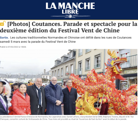 2022年3月2日的法国西部大报纸“La Manche Libre”—库塘斯,中国新年彩妆游行有些什么呢?