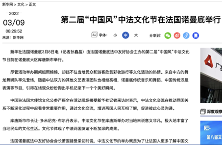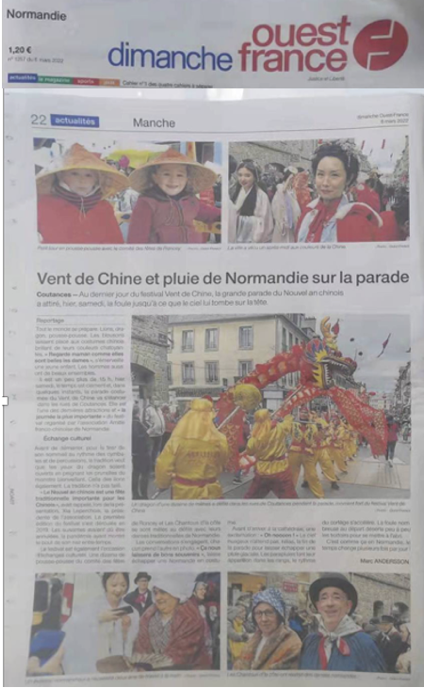 文化节的第二天2022年3月6日;Ouest France就在他们的周日特刊上全版报道了文化节的盛况