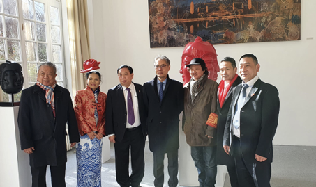 3月4日晚,在库塘斯市博物馆隆重举行了旅法艺术家马泽霖《佛》当代艺术展开幕式.法国参议员贝阿特丽丝·格斯林女士(Beatrice Gosselin),拉芒什省副省长弗朗索瓦兹·普路维-迪亚兹女士(Françoise PLOUVIEZ-DIAZ),库塘斯市市长让-多米尼克·布尔丹先生(Jean-Dominique BOURDIN),库塘斯市主管文化的副市长克里斯琼·萨瓦日先生(Christian SAVARY),前库塘斯市长Yves LAMY先生(伊夫·拉米)及法国诺曼底法中友好协会会长萧遐(Xia LEPERCHOIS)及协会成员,库塘斯商会主席文森乐贝儿师哇先生(Vincent LEPERCHOIS);还有从巴黎特地赶来的钢琴教育家周勤龄女士、法国欧亚交流协会会长高立昂先生(COLLIGNON)、前法国美术家协会主席雷米·艾融(Remy ARON)、法国华人贸易促进会执行会长林相伟及戏曲表演老师小敏和金玲女士等嘉宾出席艺术展开幕式。