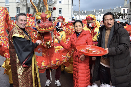 节日典礼由旅法艺术家,原CCTV资深导演李雅东老师和法国诺芒底法中友好协会会长萧遐主持。到场重要嘉宾有中国驻法使馆文化公参严振全先生,法国国民议会议员、前农业部长斯特凡·特拉维尔先生(Stéphane TRAVERT),法国参议员贝阿特丽丝·格斯林女士(Beatrice Gosselin),诺曼底大区副主席西尔万·莱图兹先生(Sylvain LETOUZE),拉芒什省副省长弗朗索瓦兹·普路维-迪亚兹女士(Françoise PLOUVIEZ-DIAZ);原法国国民议会议员,拉芒什省省议员,库塘斯海陆社区副主席格雷戈里·加尔巴登先生(Grégory Galbadon);库塘斯海陆社区副主席丹尼尔。勒弗兰先生(Daniel LEFRANC),库塘斯市市长让-多米尼克·布尔丹先生(Jean-Dominique BOURDIN),库塘斯市主管文化的副市长克里斯琼·萨瓦日先生(Christian SAVARY),前库塘斯市长Yves LAMY(伊夫·拉米)先生及库塘斯商会主席文森乐贝儿诗哇(Vincent LEPERCHOIS)先生;ONG法中文化交流促进中心蔡垂彪主席和Mr François LAM-Mr.YE和全体市议员。