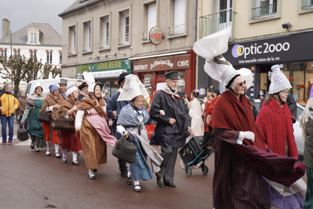 3月5日下午,来自中法200多位由法国华人梦之声艺术团和法国博衍汉服协会为主的艺术家们在时雨时晴的天气中,参加了主办方组织了彩妆游行活动,吸引了民众冒雨观看,气氛热烈,将文化节活动推向高潮。这天的库塘斯街道上张灯结彩,万人空巷,在中国的锣鼓声中,舞龙舞狮队前行,接着是各种盛装表演,中法队伍,穿梭不断。各大报纸及时的报道了文化节的盛况