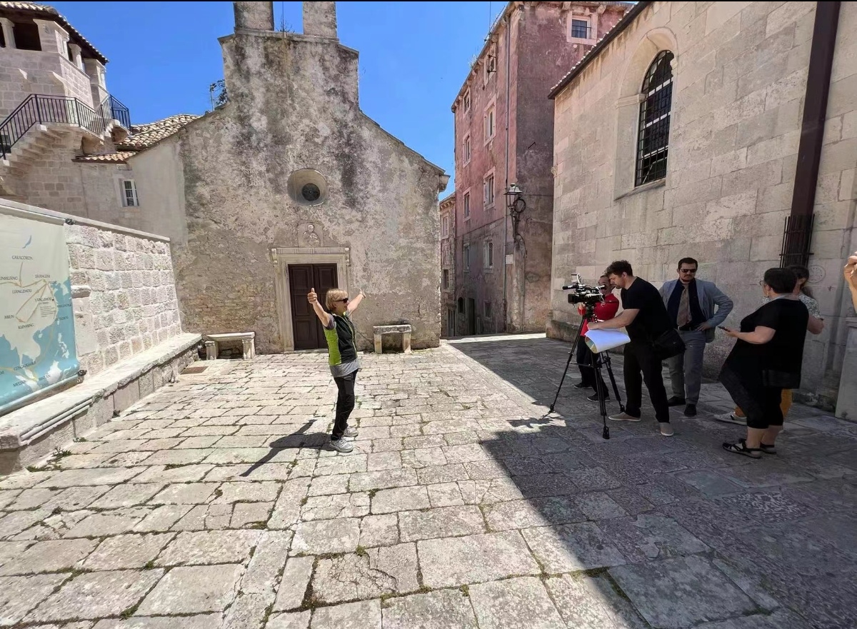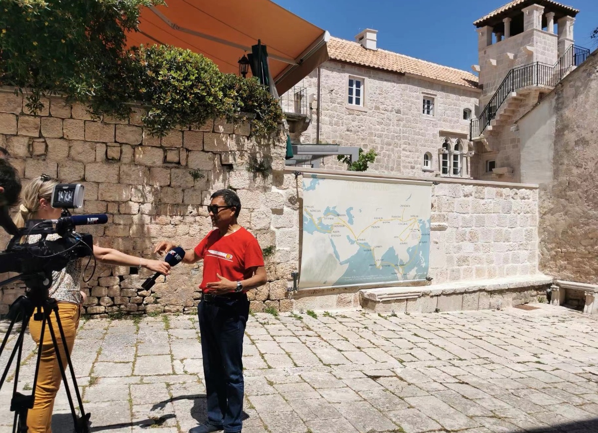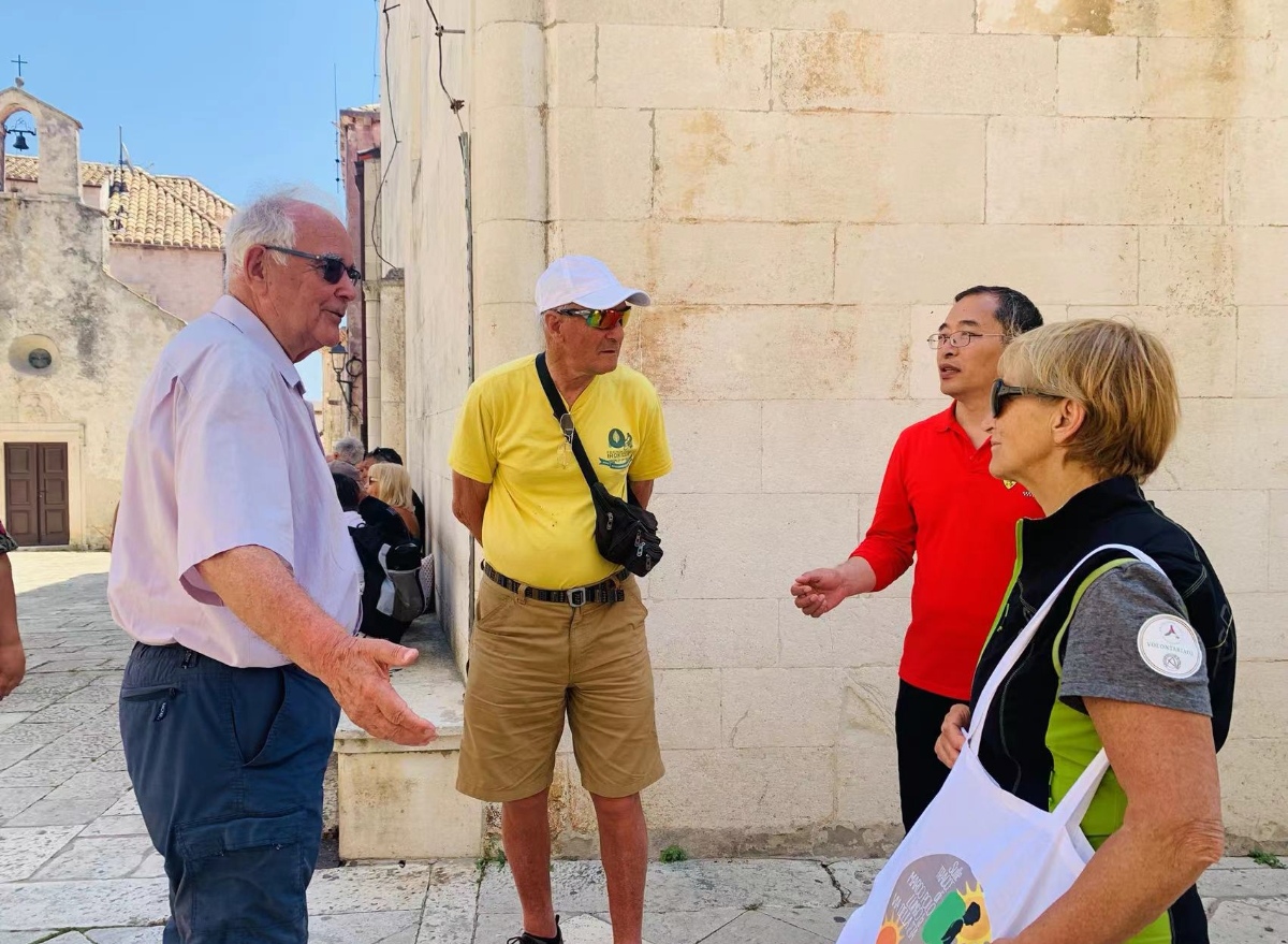 5月17日,我们在克罗地亚科尔丘拉岛上参观时,当地居民看到我们是中国人,就用热情地用中文同我们打招呼,还一起聊天。他们指着身后一座漂亮的城堡式建筑说:马可波罗的父母及祖父母还有叔叔都曾经居住在这里。”
