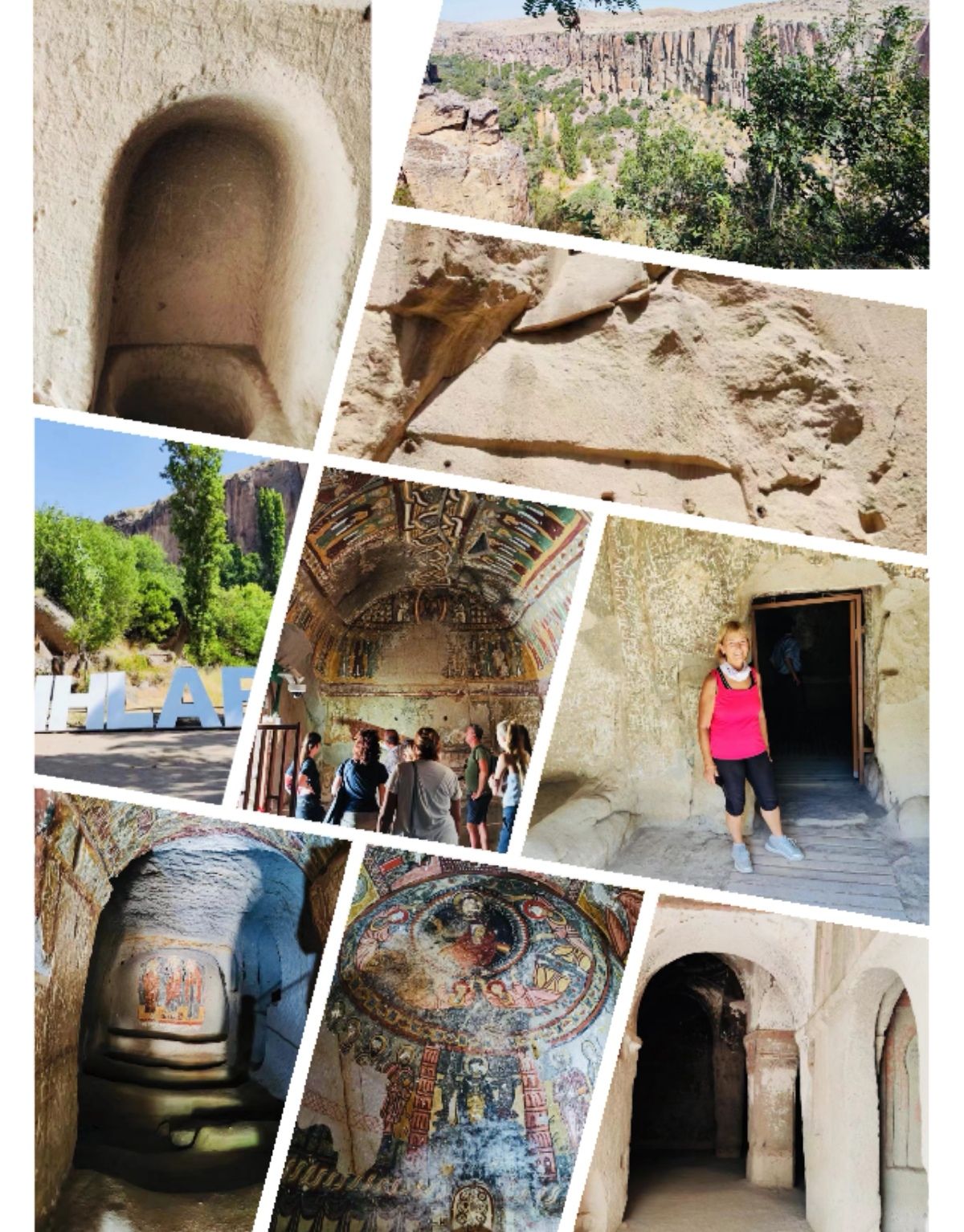 维娜刚刚发来图文:她说:昨天我还游览了厄赫拉热峡谷(Ihlara)。这里是拜占庭时期基督徒的隐修地,拥有很多彩绘的石窟教堂。峡谷是随着哈桑达基山火山的喷发而形成的,其地形地貌不仅深受拜占庭时期隐士们的喜爱,这里还留下的许多古罗马时期的各种遗迹。La Valle di Ihlara,sièformata con l'eruzione del vulcano della montagna Hasandagi.Molto amata dai monaci bizantini,si possono notare nei disegni sia romani,che della Cappadocia e dei bizantini.