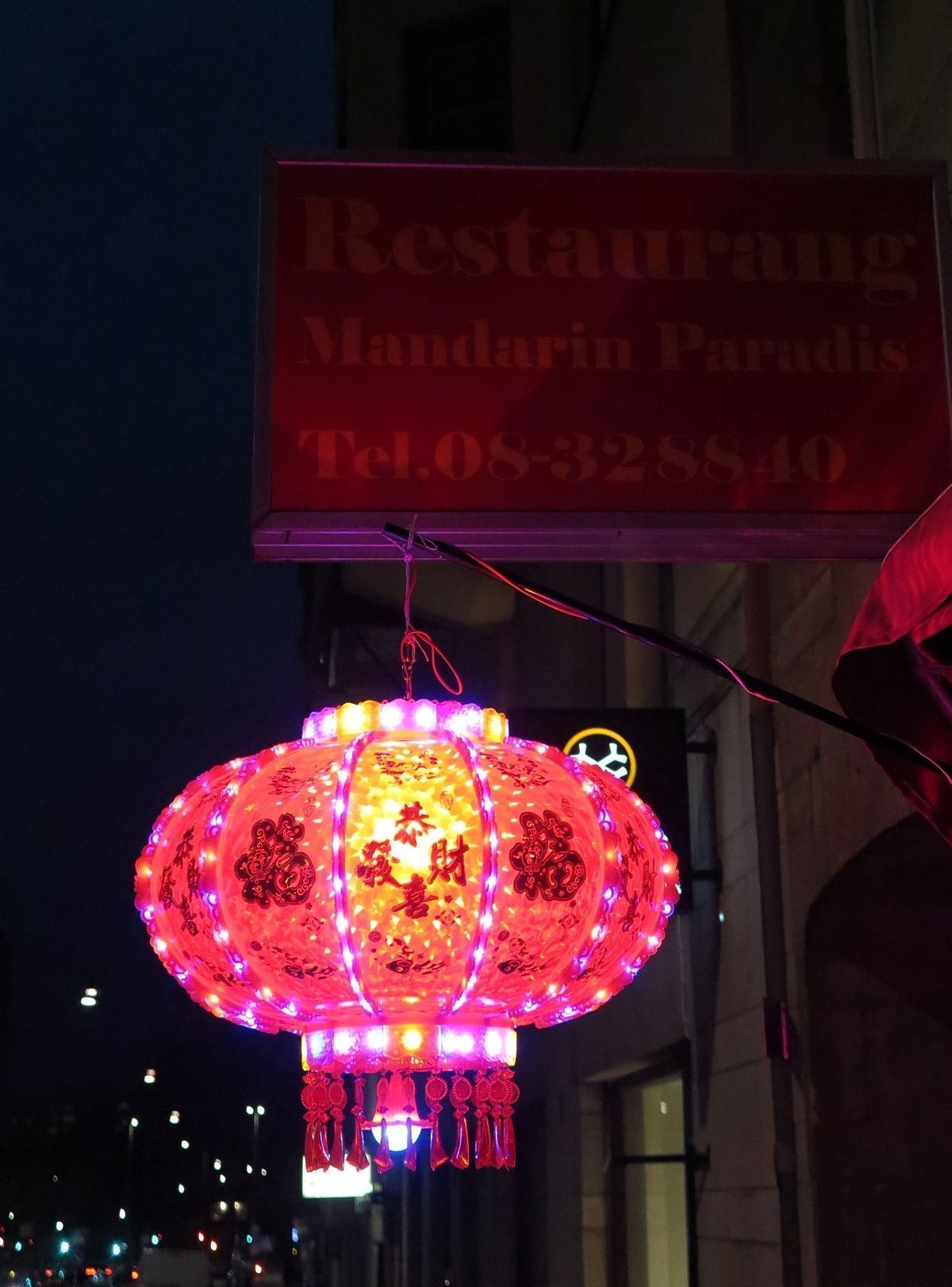 会场外走马灯祝福新春愉快在大红灯笼下