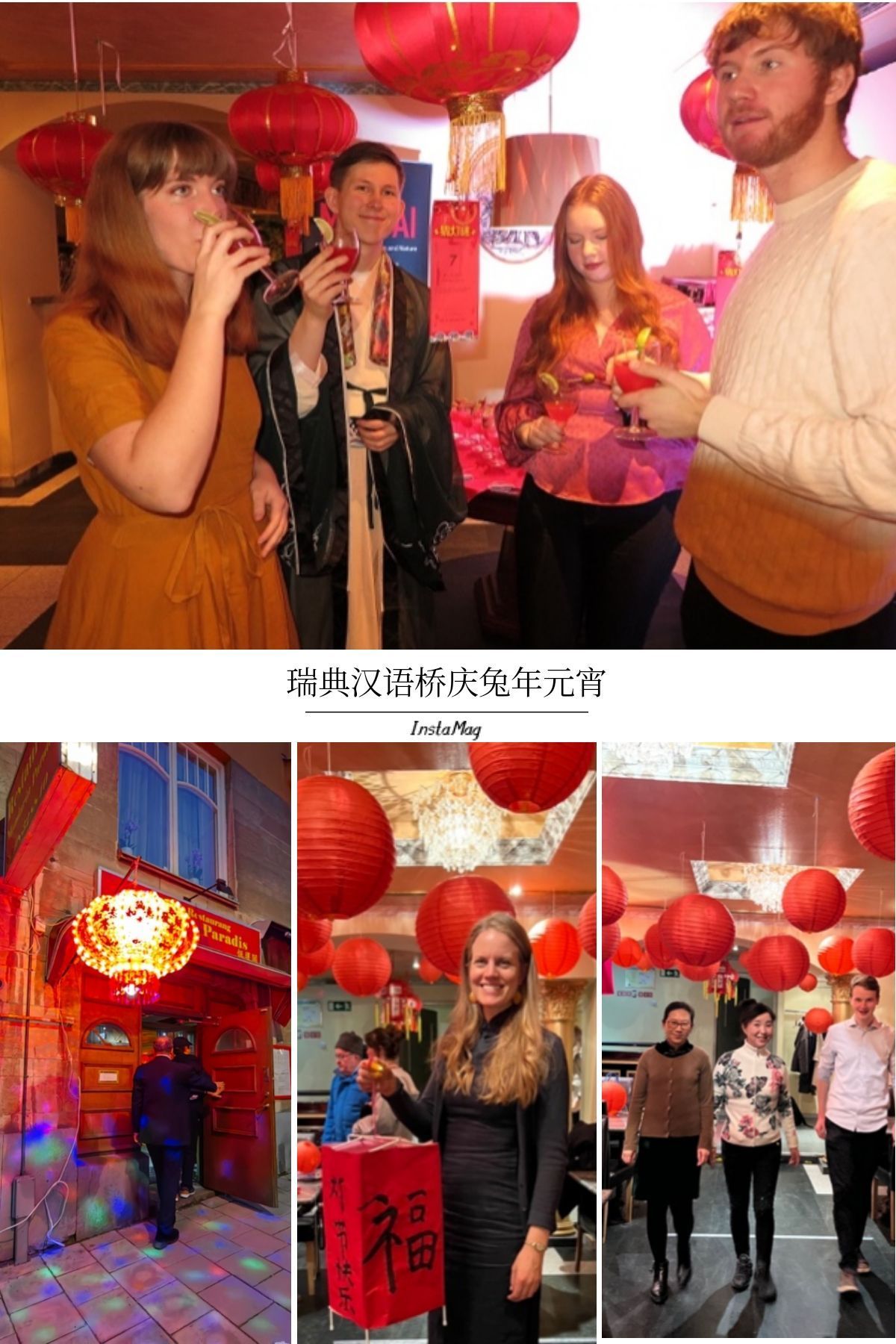 (本报斯德哥尔摩讯)2023年1月29日,斯德哥尔摩市中心的一条街道上,一盏高悬的走马灯不断引起过路行人的驻足。身着汉服、唐装、旗袍等不同服饰的汉语桥俱乐部的中瑞师生们和来自各方的友人,兴高采烈地提着自己制作的灯笼前来参加兔年元宵节灯诗酒会。会场里大红灯笼密布,乐声歌声吟诵声此起彼伏,充满新春的祥和气氛。大家品鉴着以红灯笼命名的鸡尾酒,打着俱乐部自制的双语灯谜,饶有兴致地欣赏了以“元宵•夜之诗•有爱”为主题的文艺演出。