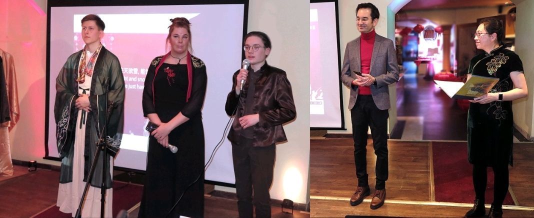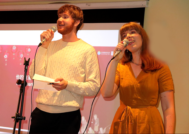 瑞典中文学生们从中国古诗词里改编演唱的歌曲«欧阳修·元夕»和«李白·把杯问月»,受到了大家的热烈欢迎!汉语桥瑞典学生纷纷登台,朗诵了多首中国古典诗词,展示了他们的中文水平和对中国传统文化的理解。四位中外宾客用阿拉伯语、中文、瑞典语和英语一起吟诵的中外爱情诗词环节将活动推向了高潮,大家不仅欣赏到了不同语言的音调美、不同诗词的韵律美,更体会到了天下一家、文化相通的爱情之美、友谊之美。