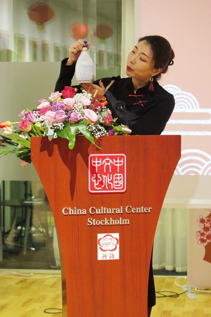 山⻄杏花村汾酒是中国独具特色的传统佳酿,不亚于茅台,更是茅台的祖师。汾酒集团瑞典总代理陈微玮女士说,欢迎大家在兔年春节之际来此品鉴佳酿,经历三年疫情,大家在后疫情时代“兔”飞猛进,期盼行行业业繁荣昌盛,汾酒也不虚此为,选择在这儿举办2023年汾酒春茗活动具有重大意义,斯德哥尔摩中国文化中心是一个积极推介中国传统文化,推动中瑞文化领域的交流与互鉴的场所,恰逢2023年的春节中国传统名酒,清香型白酒的典型代表汾酒来到了瑞典,为瑞典的华人华侨们兔年健康团聚助兴添彩,从此愿瑞典中餐馆的酒单上又多了一个凝聚着中国劳动人⺠智慧结晶的国之瑰宝:汾酒,让我们每一位爱国的海外侨胞们为积极宣传中国的酒文化而努力,让我们一起⻬心合力不断提高汾酒在瑞典的知名度,美誉度和忠诚度。汾酒在瑞典的推广活动正式起航。