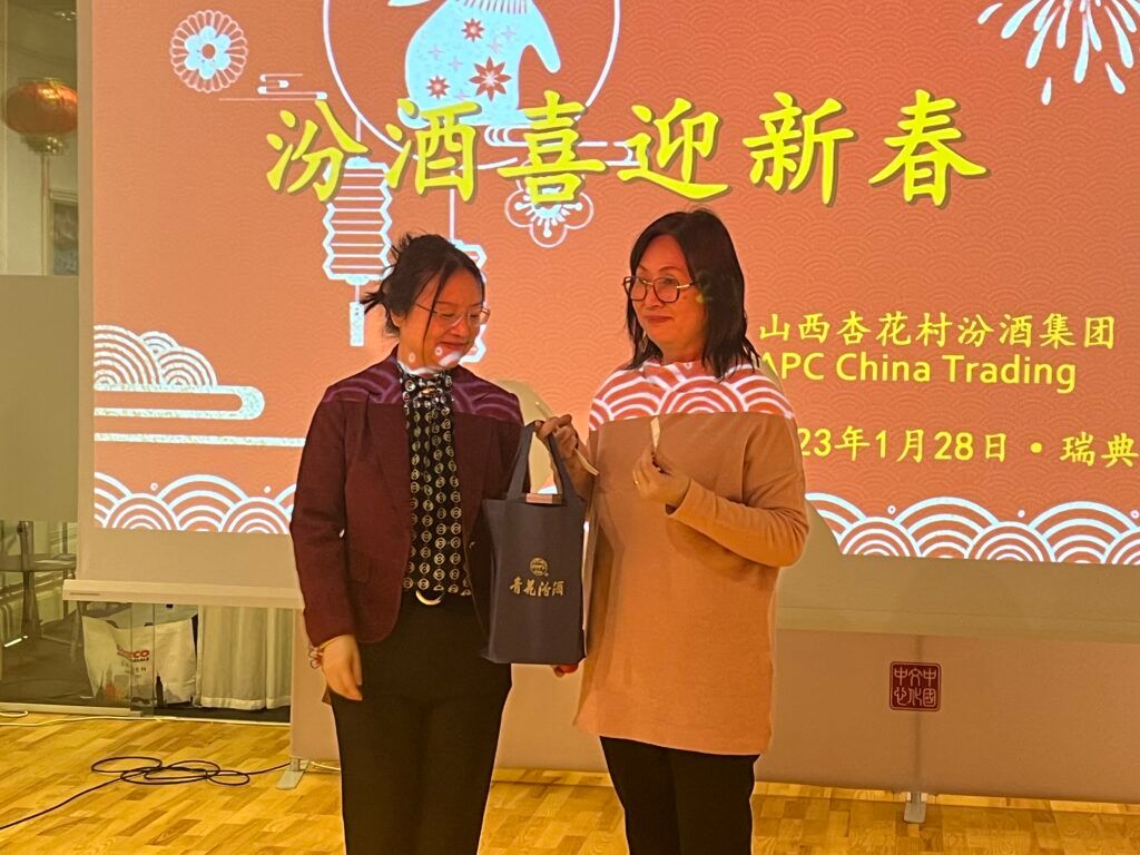 北欧时报1月28日斯德哥尔摩讯(记者 路德)–瑞气盈门辞旧岁,典至福来杏花春!1月28日,在瑞典首都国王花园边上,斯德哥尔摩中国文化中心“杏花酒香”,群贤毕至,欢歌笑语中,原来这里正举行山西青花汾酒瑞典分享推广活动。来自瑞典文化界、学者、侨界侨领代表、各大中餐厅老板近六十人参加了分享会。