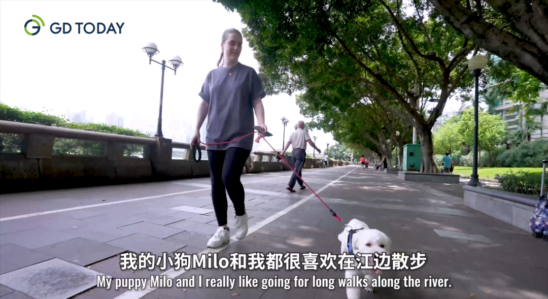 如果不是出差,每天清晨,Rachel都会牵着她的宠物小狗Milo在珠江边散步。“我喜欢听江边的人唱粤剧,还有一些阿姨唱歌,好有生活气息,这就是我喜欢的广州的样子。”Rachel说,在这里也认识了不少朋友,一些阿叔、阿姨会和她聊天。记者在采访中也多次见证了这一幕。