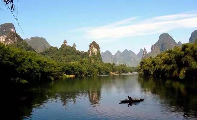 罗城风光一景:罗城小长安武阳江,远传三个人头山峰相传就是刘三姐和阿牛哥相会,渔夫撑船载歌回来,“只有山歌敬亲人”的真实写照!/北欧时报
