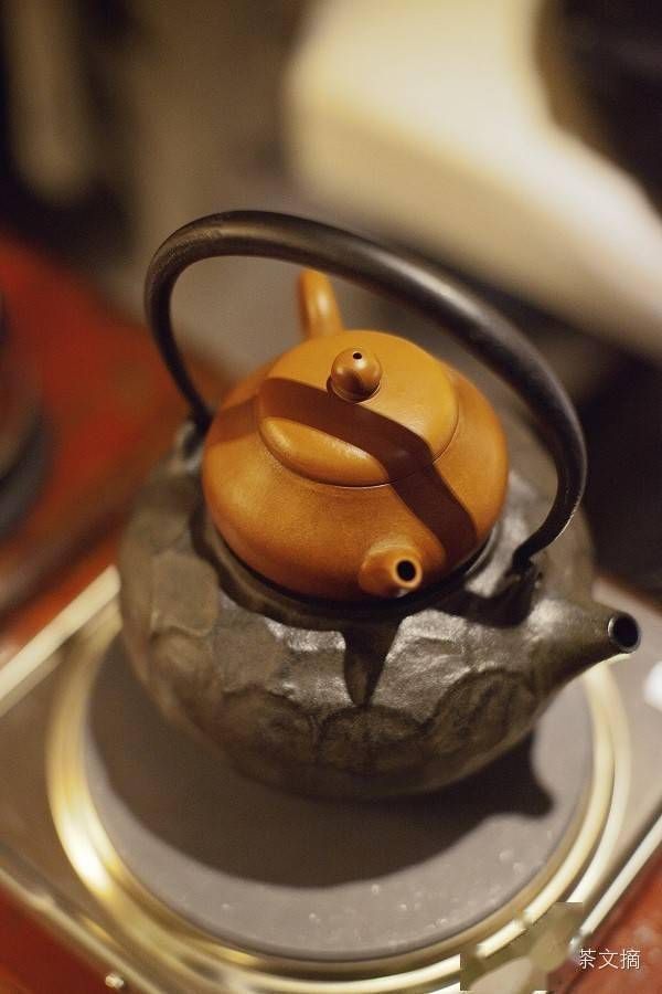 何先生在泡老普洱前,会把壶身放在未盖的铁壶上加热,也就是蒸一下,之后再用热水淋壶,这里也有它的道理,被人淋壶一般是激发茶香,他确实因为老茶往往有陈味或浊气。他说,紫砂的好处是透气不透水,下面的热一逼,茶里的浊气能瞬间消失。