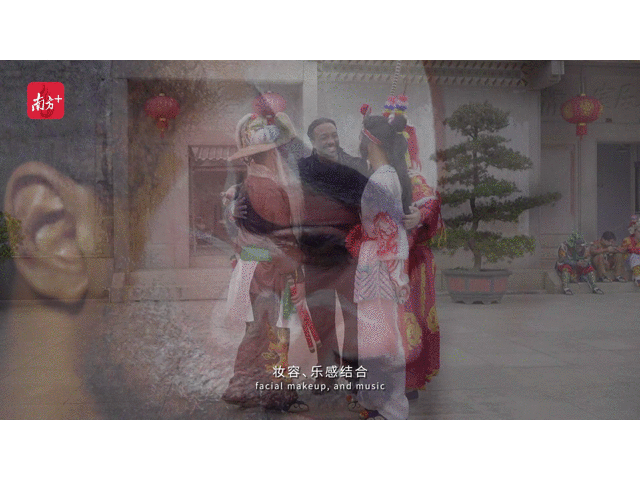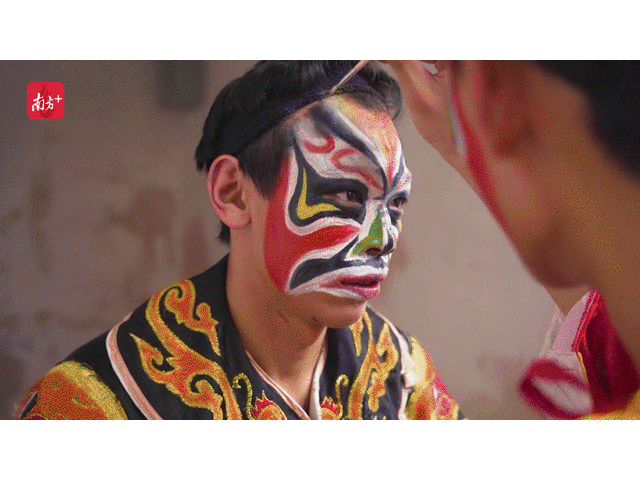 “我可以试试这个英歌妆吗?”在卡卡的主动提议下,英歌队为卡卡画上了“半文半武”的英歌妆,这让卡卡很兴奋。