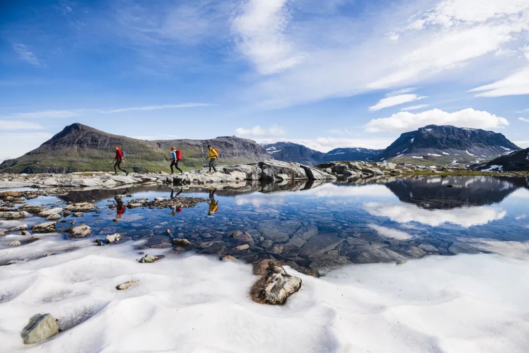 如果你选择最北端的路段(阿比斯库-尼卡卢奥克塔),可以从STF阿比斯库游客中心向南出发。你将经过阿比斯库国家公园,沿途有开阔的平原、大量的湖泊和溪流,以及瑞典最高的几座山峰。即使在温暖的夏季,这些山峰依然白雪皑皑。