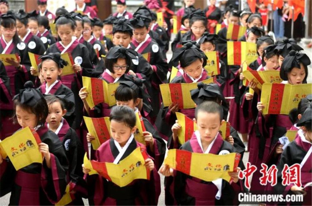 福州小学生重温传统儒家拜师礼。(图片来源:中新网)