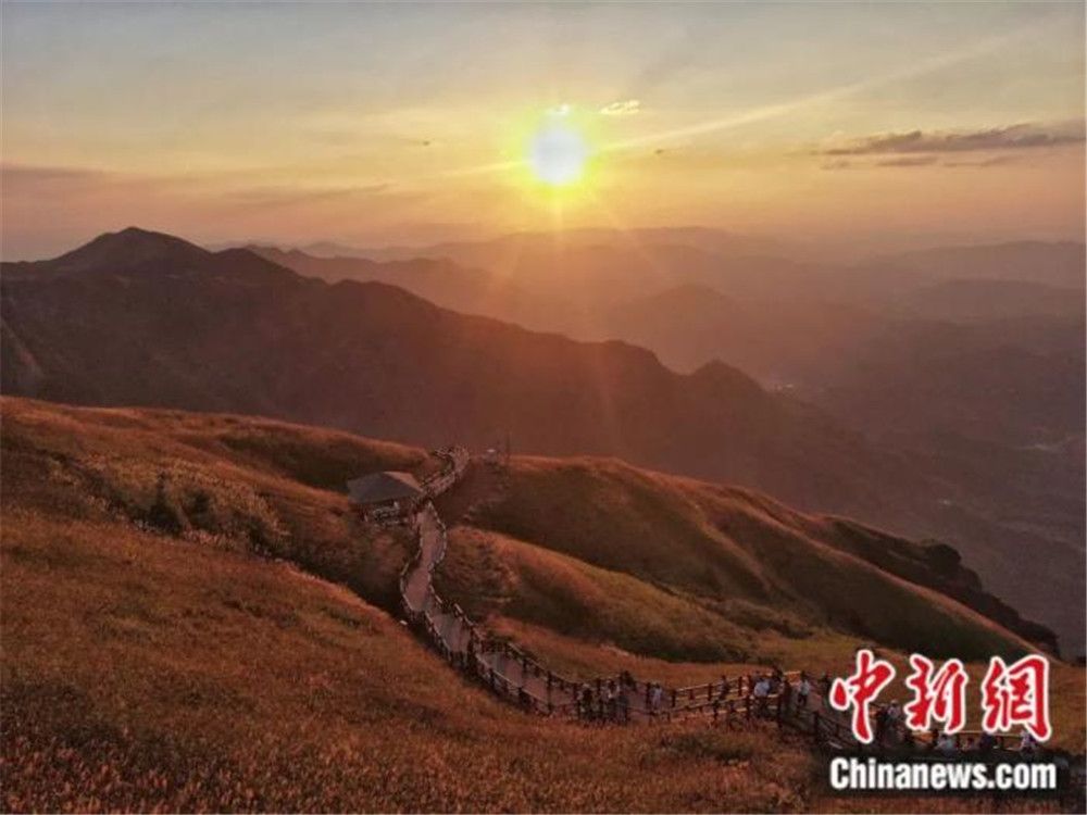 重阳节民众武功山登高游玩。(图片来源:中新网)