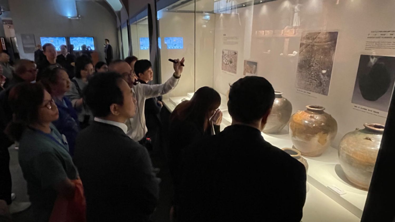 2023海外華文傳媒合作組織廣東省高質量發展主題參訪調研團來到位於陽江市海陵島的廣東海上絲綢之路博物館,了解「南海I號」前世今生。(點新聞記者黃寶儀攝)