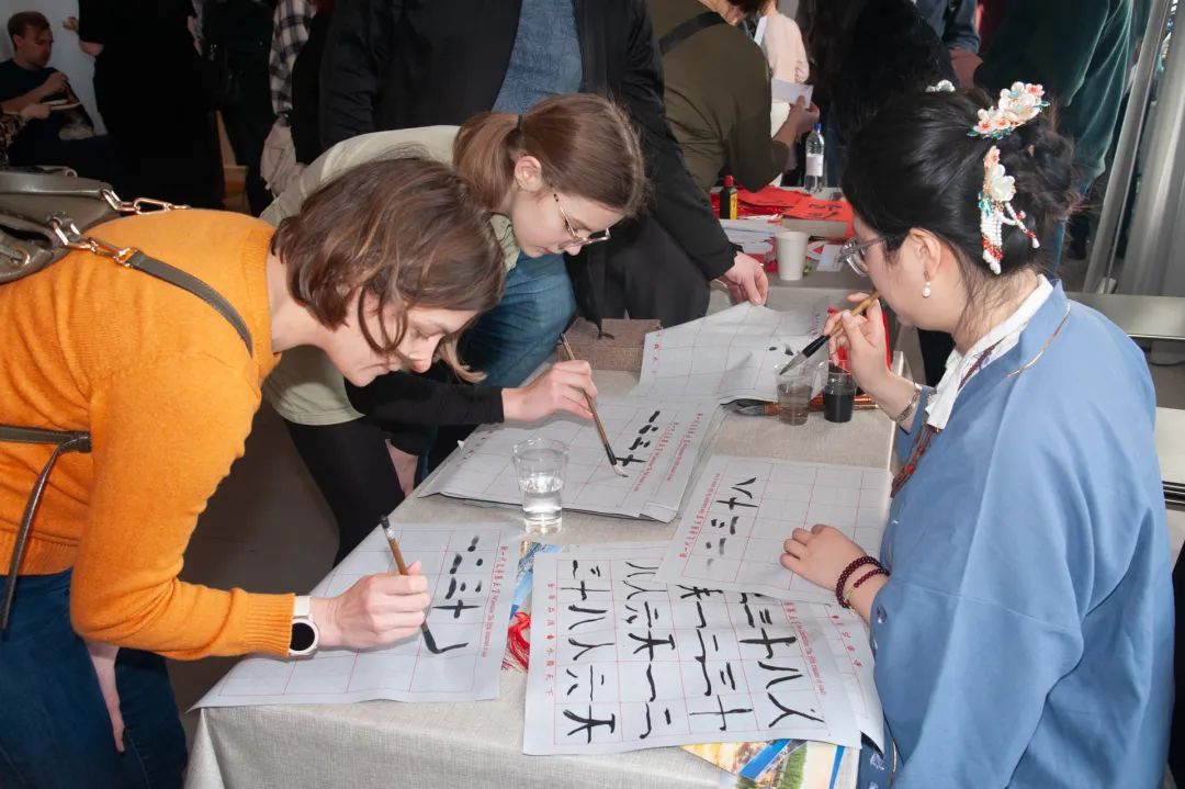拉脱维亚民众拿起毛笔体验中国书法的魅力