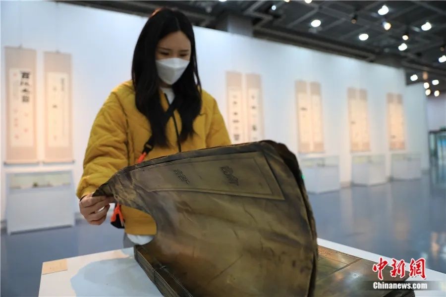 观众翻看铜质作品《论语》。(图片来源:中新网)