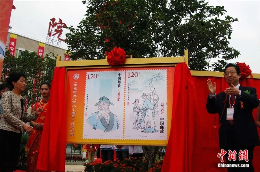 2010年10月22日,《朱熹诞生八百八十周年》纪念邮票首发仪式在福建武夷山举行。(图片来源:中新网)