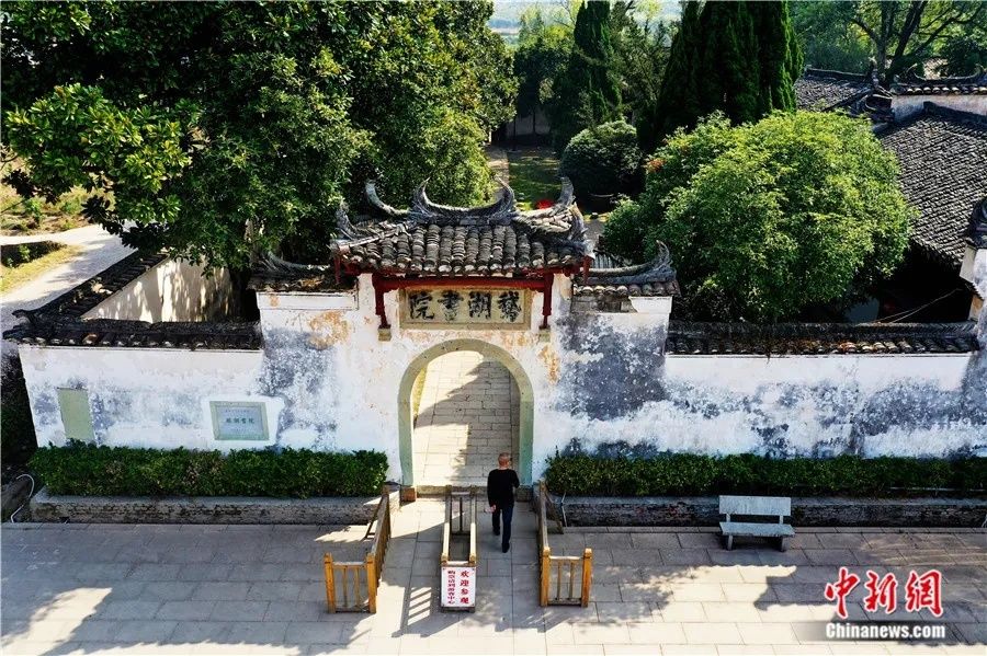 航拍位于江西省上饶市铅山县鹅湖山麓的鹅湖书院。鹅湖书院曾是一个著名的文化中心,尤其是南宋理学家朱熹与陆九渊等人的鹅湖之会,成为中国儒学史上一件影响深远的盛事。(图片来源:中新网)